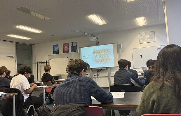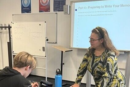 Anschließend führte Scheicher die Klasse durch eine genaue Analyse von Auszügen aus Angela’s Ashes und Wavewalker. Die Schüler verglichen die in beiden Werken verwendeten sensorischen Techniken und untersuchten, wie die Autoren Atmosphäre schaffen, Emotionen hervorrufen und Details ausbalancieren. Scheicher merkte an, dass wirkungsvolle Memoiren sowohl positive als auch negative Emotionen enthalten und dass „weniger mehr ist“. Sorgfältig gewählte Sprache kann den Leser manchmal stärker in den Bann ziehen als langatmige Beschreibungen.