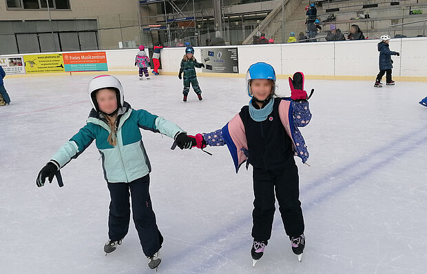 Statt flüssigem Wasser durften unsere zweite, dritte und vierte Klasse ihr Können auf dem Eis unter Beweis stellen.