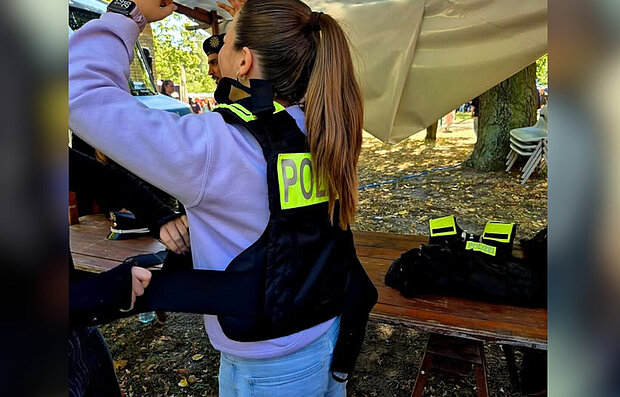 Ein im wahrsten Sinne des Wortes fesselndes Erlebnis war es, als die Schüler:innen Frau Kammermeier Handschellen anlegen konnten. Außerdem konnten sie kugelsichere Schutzwesten anprobieren, mit speziellen „Rauschbrillen“ Kettcars lenken, praktische Tipps zur Vermeidung von Taschendiebstahl bekommen und noch vieles mehr.