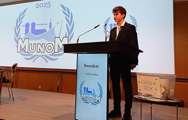 Die MUN-Delegation der 10. Klasse von Phorms ergreift das Wort: