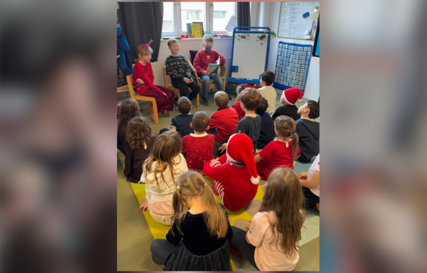 In der letzten Woche vor den Weihnachtsferien wurde es in den ersten Klassen besonders gemütlich: Die Kinder bekamen Besuch aus der dritten Klasse. Mit im Gepäck hatten die älteren Schülerinnen und Schüler spannende Vorlesegeschichten, mit denen sie die Erstklässlerinnen und Erstklässler sofort in ihren Bann zogen.